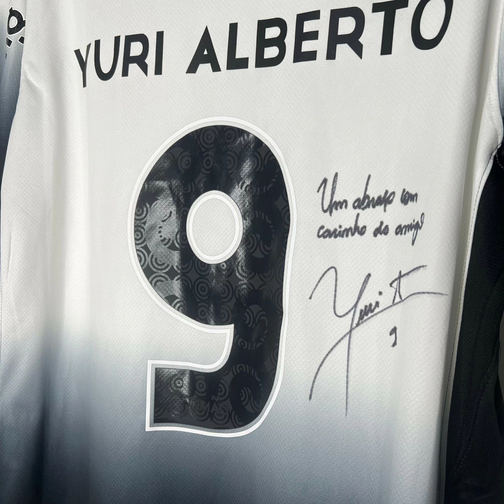 Detalhes: Camisa Nike Corinthians I 2024/25 Torcedor Pro Masculina, uma peça exclusiva e cheia de história. Este modelo, confeccionado com tecnologia avançada para proporcionar conforto e desempenho, é ideal para os torcedores que desejam demonstrar sua paixão pelo Timão com estilo e autenticidade. Além do design oficial inspirado na temporada 2024/25, a camisa possui o autógrafo do craque Yuri Alberto, tornando-a um item colecionável e único. Esta peça foi usada pelo próprio jogador em um momento de conquista histórica, agregando ainda mais valor emocional e simbólico para os fãs. Uma verdadeira relíquia para os apaixonados pelo Corinthians!