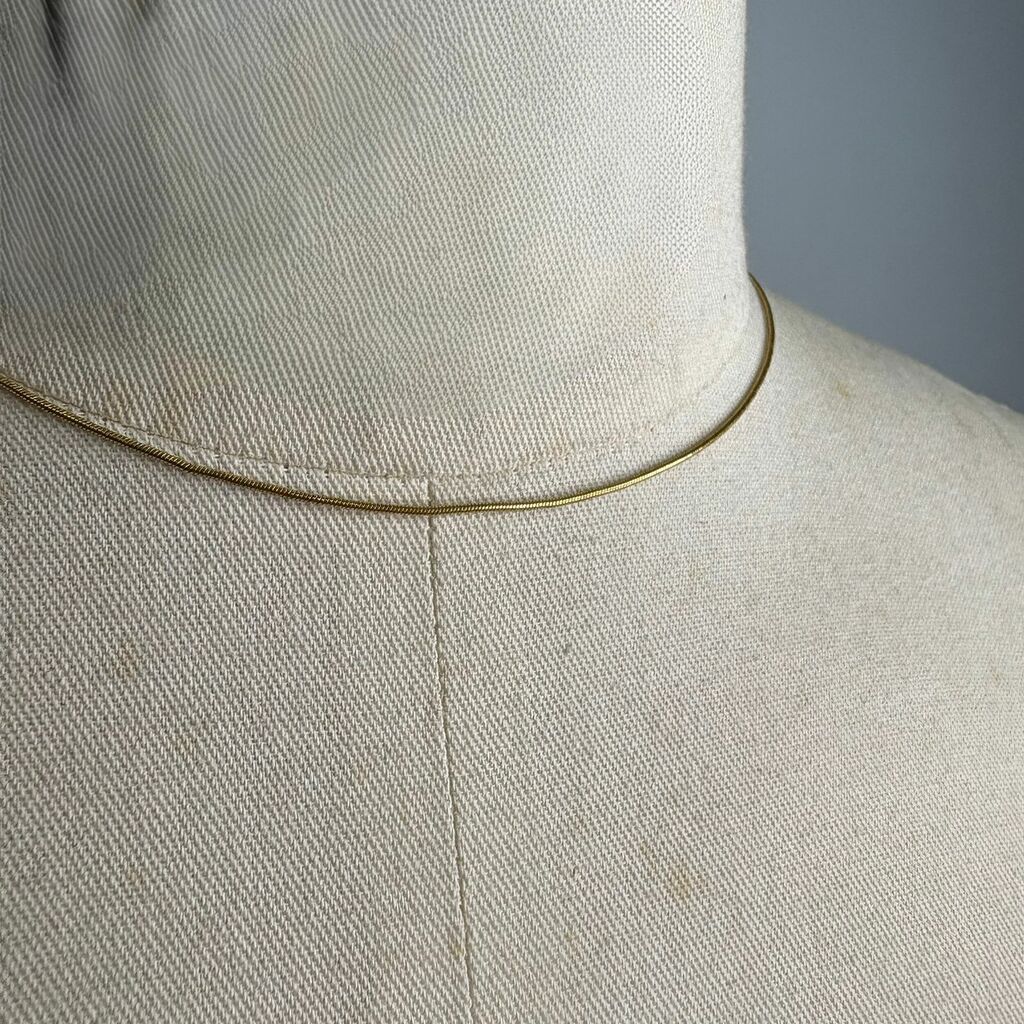 Detalhes: Colar tipo choker com design minimalista em tom dourado. Possui malha fina e estrutura rígida, ideal para usar ajustado ao pescoço. A peça tem acabamento polido e visual elegante, sendo perfeita para composições modernas ou sofisticadas, tanto sozinha quanto em mix de colares. Ideal para valorizar decotes ou blusas de gola aberta.