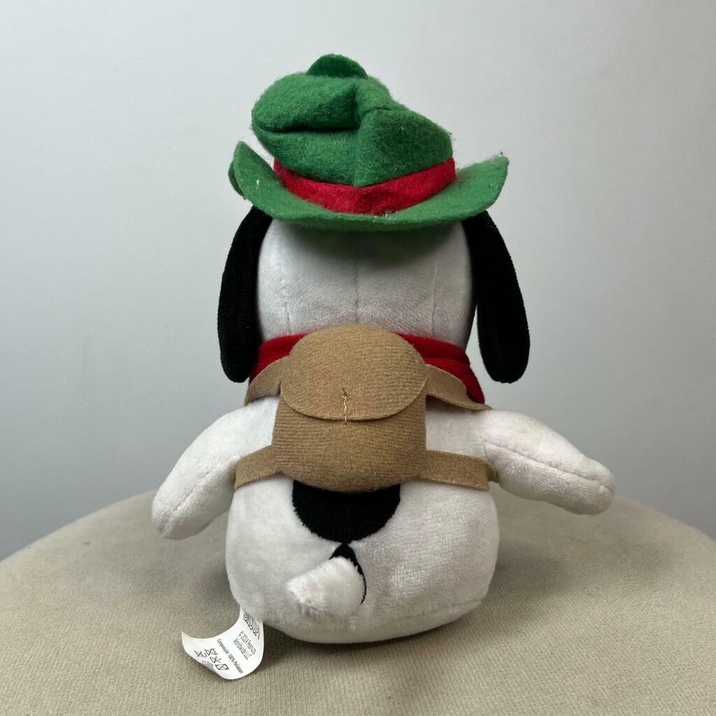 Pelúcia do personagem Snoopy, confeccionada em material macio e de toque agradável, ideal para colecionadores e fãs da turma do Peanuts. O boneco apresenta o Snoopy vestido com chapéu verde com detalhes em feltro amarelo e vermelho e um lenço vermelho no pescoço, remetendo a um visual de montanhismo ou aventura. Produto em bom estado geral, sem danos aparentes, perfeito para decoração ou para presentear.