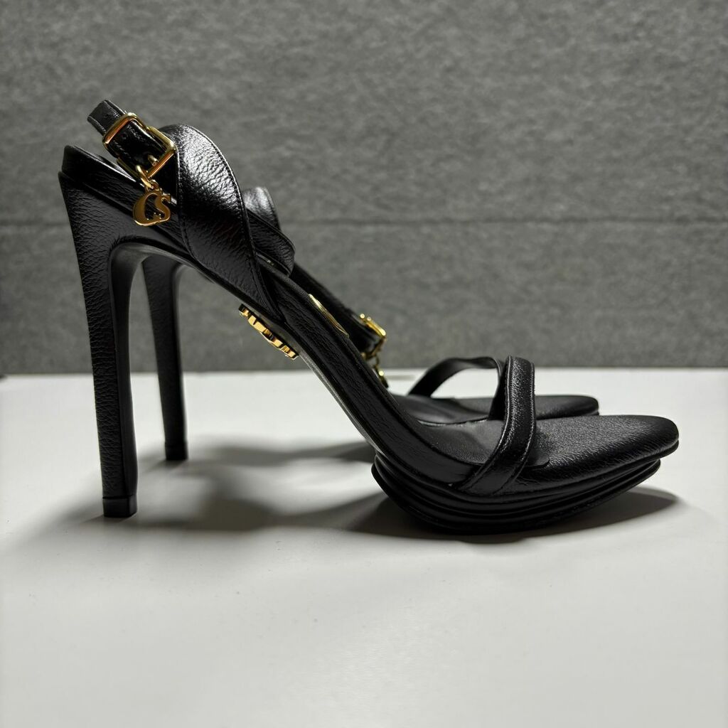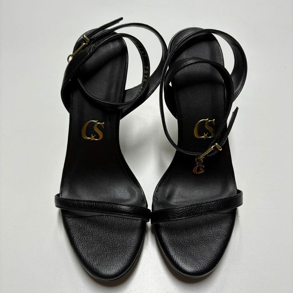 Detalhes: Sandália de couro legítimo na cor preta da marca Carmen Steffens, com design minimalista e sofisticado. O modelo conta com tiras finas, meia-pata discreta e salto alto fino que valoriza a silhueta. Possui fechamento no tornozelo com fivela dourada e pingente metálico CS, além de palmilha acolchoada com logo da marca. Ideal para compor looks elegantes em ocasiões especiais.