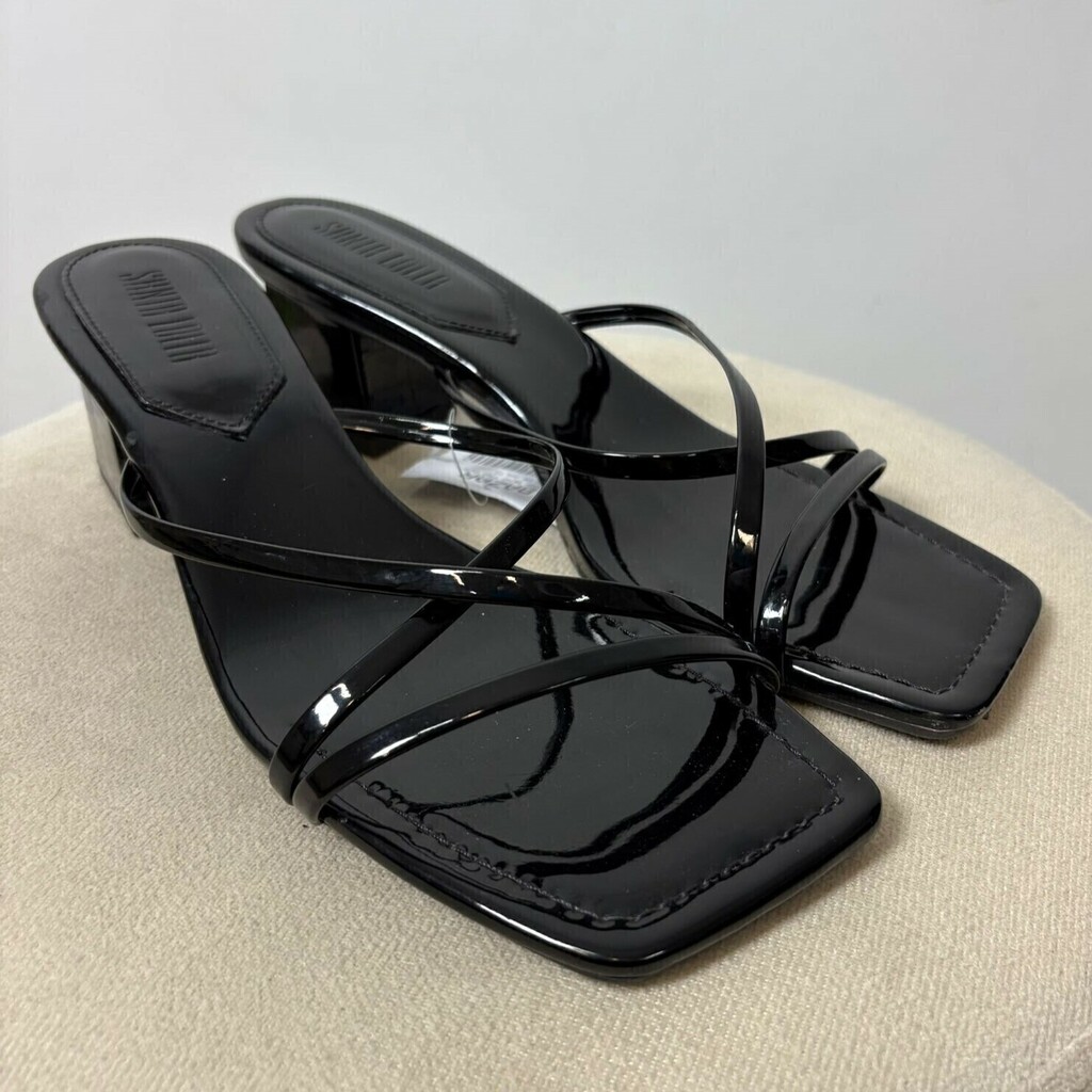 Detalhes: Sandália feminina da marca Santa Lolla confeccionada em material sintético com acabamento em verniz preto. Possui tiras finas no cabedal, bico quadrado moderno e salto médio bloco, que garante estabilidade e conforto. Ideal para compor looks elegantes no dia a dia ou em ocasiões noturnas, combina sofisticação com design minimalista.