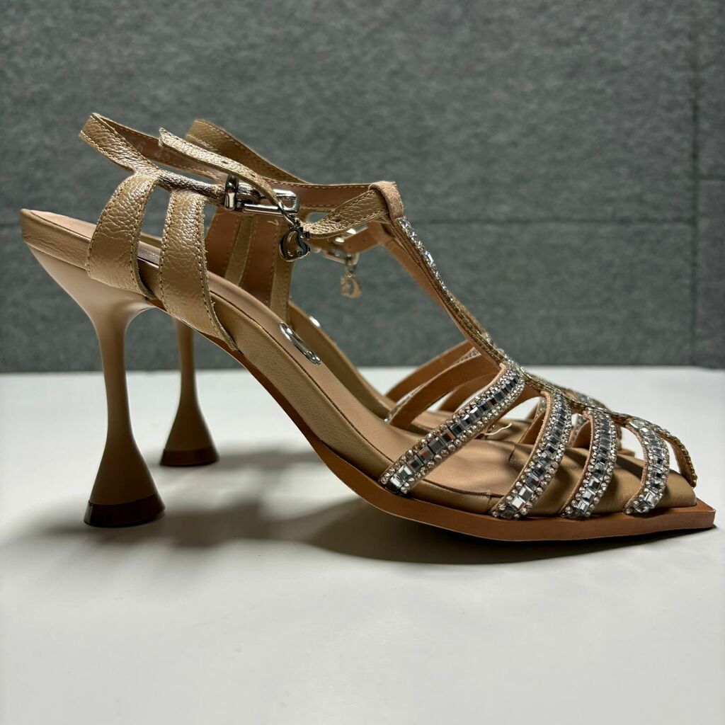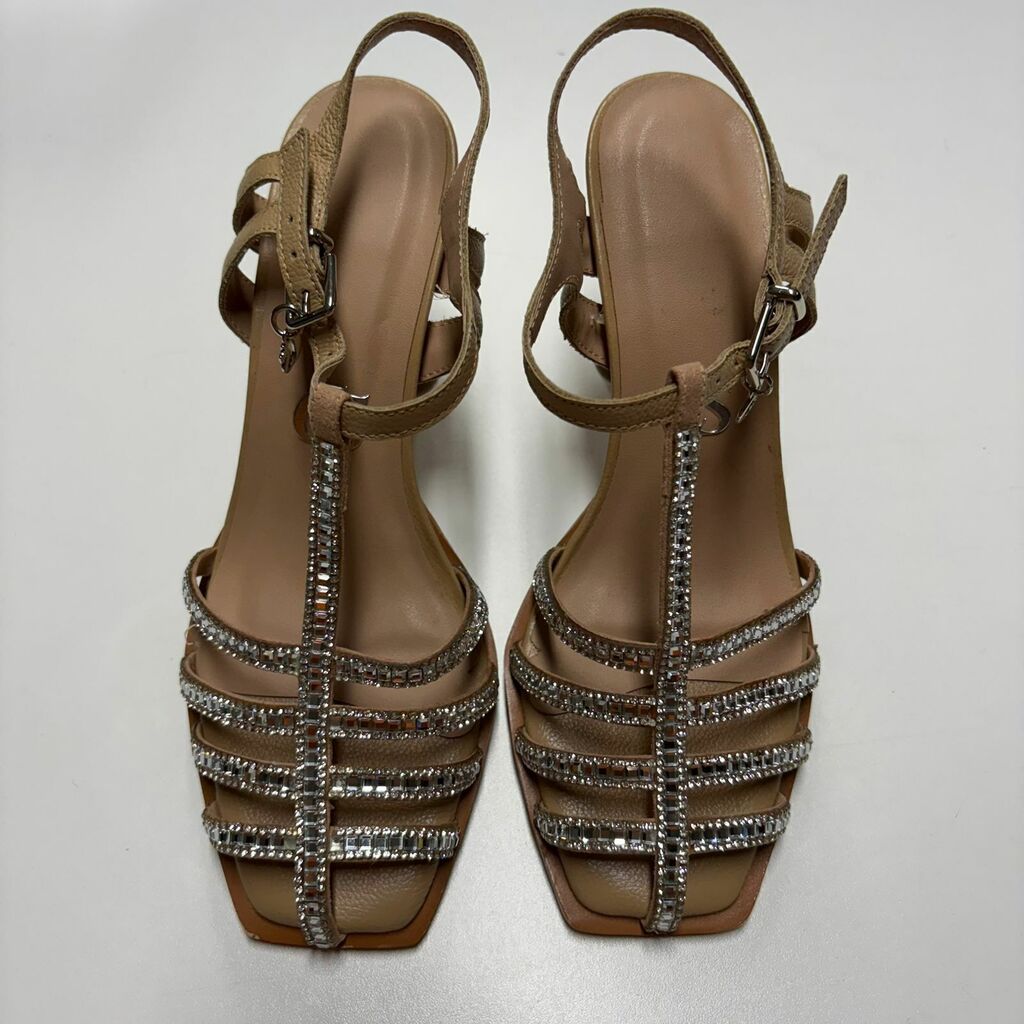 Detalhes: Elegante e sofisticada, esta sandália Carmen Steffens traz tiras finas com aplicação de pedrarias que proporcionam brilho e charme ao visual. O modelo nude conta com salto alto taça, design moderno e fechamento por fivela no tornozelo com detalhe metálico CS pendente. Ideal para ocasiões especiais, garante conforto e estilo em uma peça versátil e marcante.